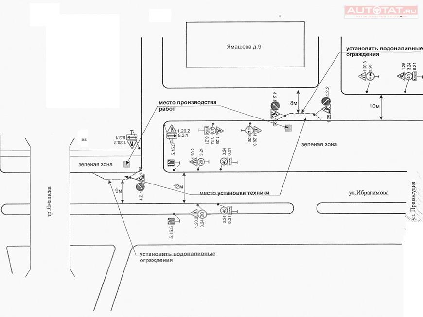 Так, до 20 апреля движения закроют возле дома №28б по пр.Ямашева и на въезде на транспортную развязку около дома №02 по пр.ю Ямашева.