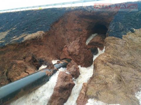 Дорога в Рыбно-Слободском районе перекрыта из-за размытой плотины. ФОТО