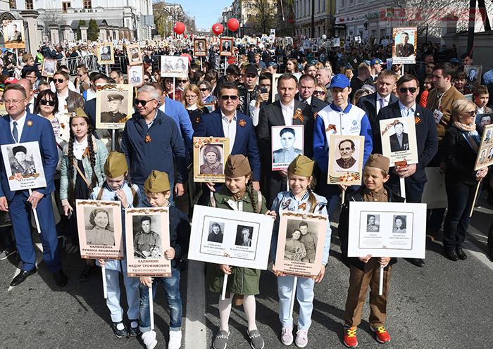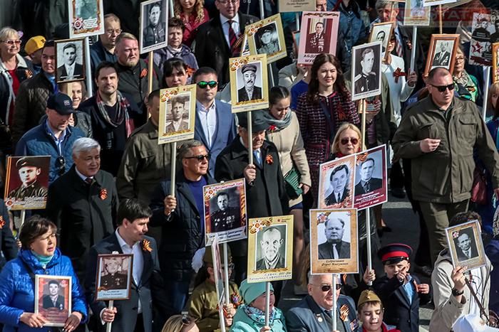 В День Победы в Казани прошла акция “Бессмертный полк”, в которой приняли участие свыше 163 тысяч горожан. Поддержали акцию и первые лица республики - Президент РТ, Государственный советник Татарстана Минтимер Шаймиев и премьер-министр РТ Алексей Песошин.