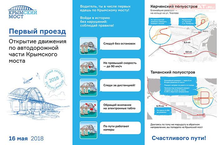 Сообщается, что проезд легкового транспорта и пассажирских автобусов откроют одновременно с двух берегов Керченского пролива по двум полосам. Максимальная разрешенная скорость - 90 км/ч.