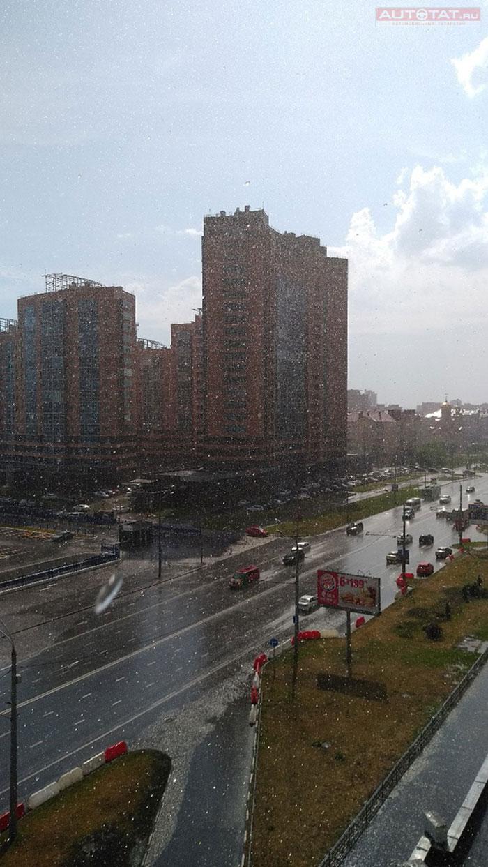 Град с ливнем обрушился на Казань: фото и видео водителей