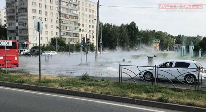В Казани продолжают устранять последствия вчерашнего прорыва трубопровода на улице Чуйкова. До сих пор на аварийном участке ограничено движение.