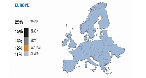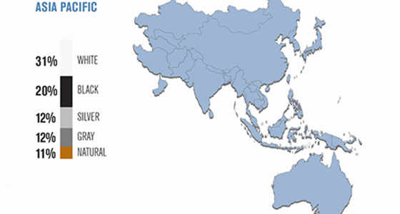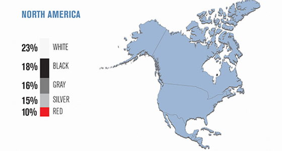 Напоминаем вам, что в 2013 году популярным у автомобилистов также оказался белый цвет. На него пришлось практически 25% от всех мировых автомобилей, а вот вторая строчка в рейтинге досталась серебристому оттенку и чёрному цвету с показателем в 19%.