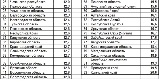 Предлагаем вашему вниманию рейтинг регионов по состоянию на начало 2015 года.